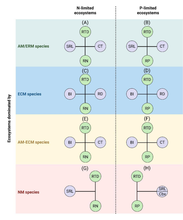 圖2基于菌根類型與養分限制類型的根經濟空間多元理論框架體系